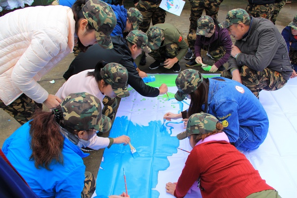 在晚會(huì)匯報(bào)環(huán)節(jié),各隊(duì)自導(dǎo)自演了 “巾幗英雄劉胡蘭”“董存瑞炸碉堡” “狼牙山五壯士”等情景話劇,通過(guò)現(xiàn)場(chǎng)朗誦紅色詩(shī)詞、唱紅歌等互動(dòng)形式,讓大家重溫了革命先烈英勇事跡,受到了深刻的革命傳統(tǒng)教育。“共繪藍(lán)圖”環(huán)節(jié)將拓展訓(xùn)練氣氛推向高潮,各隊(duì)成員現(xiàn)場(chǎng)手繪拼圖和公司LOGO,最后拼湊出一張“砥礪奮進(jìn)、永不止步”巨幅畫(huà)面,在航拍鏡頭里呈現(xiàn)了一幅令人震撼的藍(lán)圖。全體參訓(xùn)人員圍繞壯美藍(lán)圖,環(huán)抱成圓,齊聲祝福湖北農(nóng)資的明天更加美好。