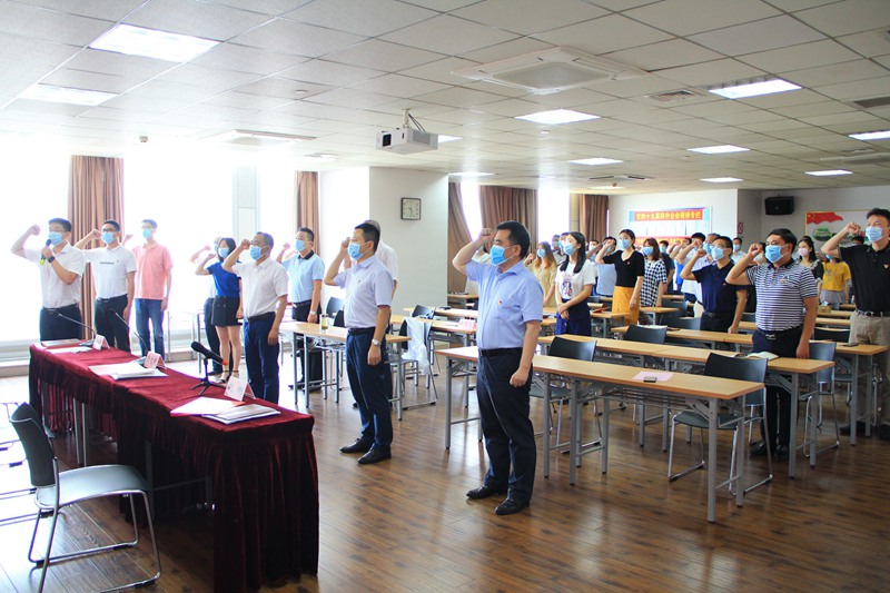 會議在雄壯的國歌聲中拉開帷幕。新老黨員佩戴黨徽、高舉右拳,面對黨旗進(jìn)行了入黨宣誓,重溫了入黨誓詞。